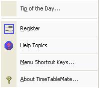 menu includes Submenus Tip of the Day, Help Topics, Register and About