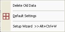 menu includes Submenus Delete Old Data, Default Settings and Setup Wizard.